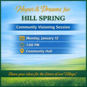 The Village of Hill Spring Council and Administration invite all residents to join us for a community conversation about the future of our Village.